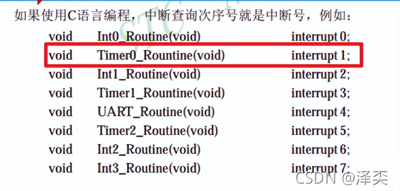 interrupt1 表示(定时器中断0) 在这里我们使用的是定时器0的中断。