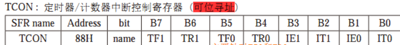 TCON可位寻址,注→可位寻址可以为每一位寄存器单独赋值。