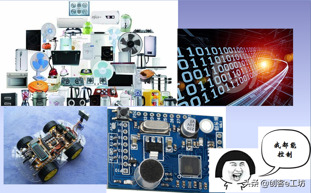 我们周边有很多的单片机,可能你看不到。在生活中如电视机、冰箱、洗衣机、电饭煲、摄像头、手机、风扇、豆浆机、空调等家电设备都有单片机的影子;在工业生产中如数控切割机、打印机、电火花机等也都有单片机的使用。