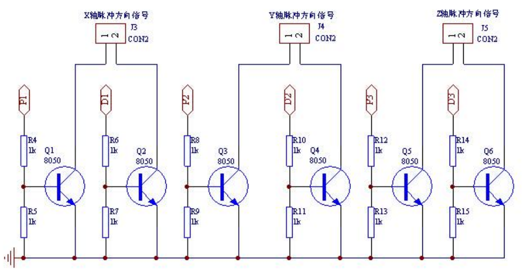 输出采用 NPN 晶体管及电极开路输出,分别接到电机驱动器脉冲和方向信号输入端。