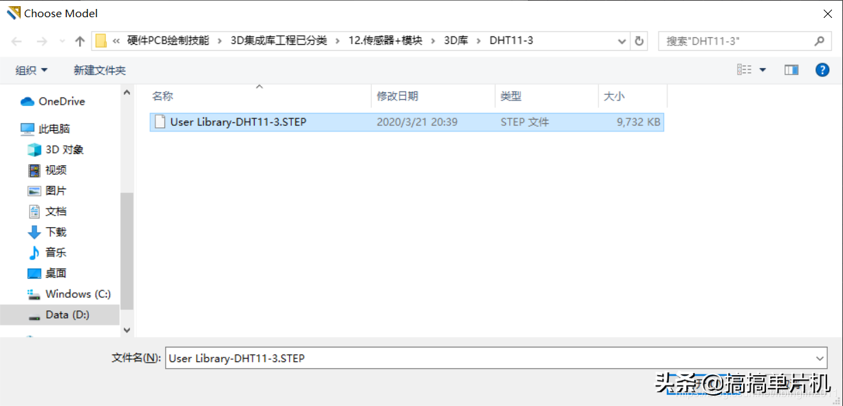 我们找到需要的模型,下载Step格式的到电脑本地。进入放置-3D模型,选中下载的模型。