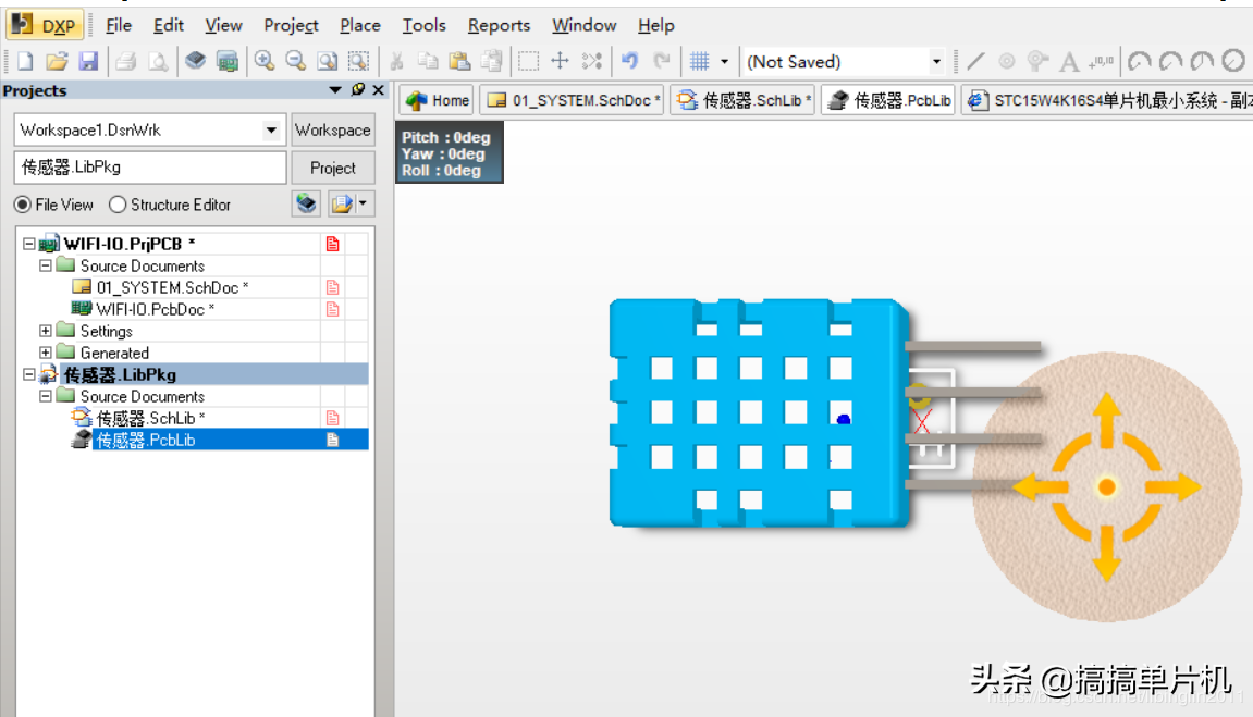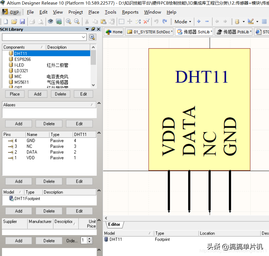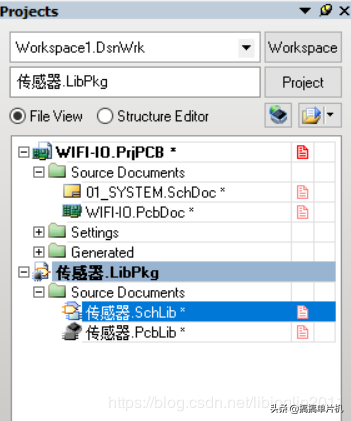 今天我们以画一个DHT11温湿度传感器为例吧,文件-新建-工程-集成库 新建一个集成库工程。