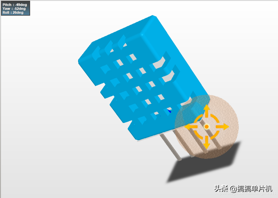 这个背景底色就是3D模型了,在view中切换到3D视图就可以看到3D效果了。但是现在这个试图是正视图的,封装是俯视图的,怎么调整呢?