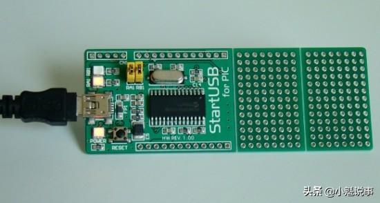 PIC的StartUSB 是一个小型开发板,具有具有快速USB 2.0支持的PIC18F2550单片机。它具有用于所有MCU引脚的连接垫以及两个用于放置附加组件的附加原型设计区域。该板的最大优点是,该微控制器已使用快速USB引导加载程序进行了预编程,因此无需任何外部编程器。您可以使用mikroBootloader将与应用程序相关的HEX文件从PC传输到PIC的程序存储器。 MikroBootloader是mikroElektronika为其USB HID Bootloader开发的PC应用程序。板载miniUSB连接器,振荡器(8.0 MHz晶体),复位电路,电源指示灯LED以及另外两个LED提供了快速启动所需的一切。另外两个LED通过跳线连接到PIC18F2550的RA1和RB1引脚。上图显示了具有所有组件和其他原型制作区域的StartUSB for PIC板。
