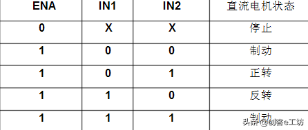 不用单片机,单纯地用电源的正极和负极来给控制端口信号,给大家演示一下控制的过程。1是高电平,对应电源的5V,0是低电平,对应电源的负极,当我们给IN1接电源负极,给IN2接5V时,电机正转(对照逻辑控制表),反之,电机反转。