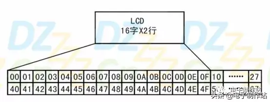 为了本文的完整性,我们简单介绍一下HD44780中DDRAM的组织方式,如下图所示: