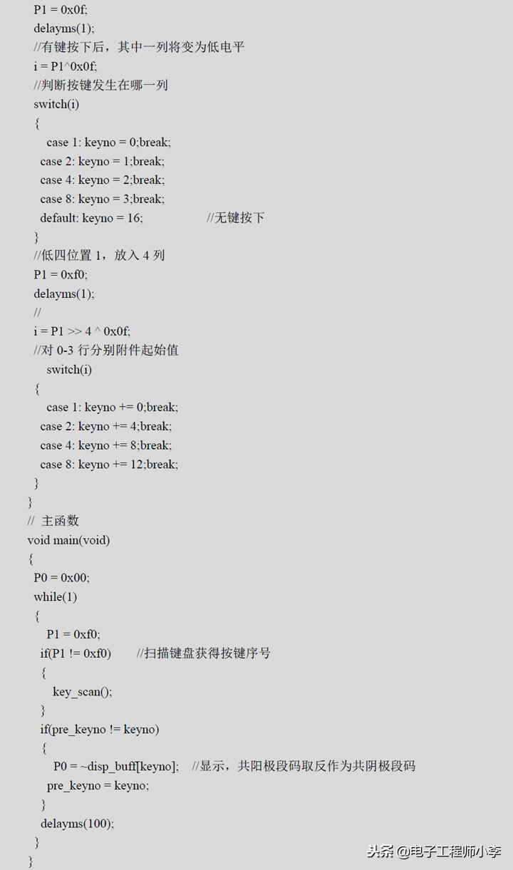 利用图2所示4×4矩阵键盘连接单片机接线原理图来作为控制按键控制程序时,其程序如下:
