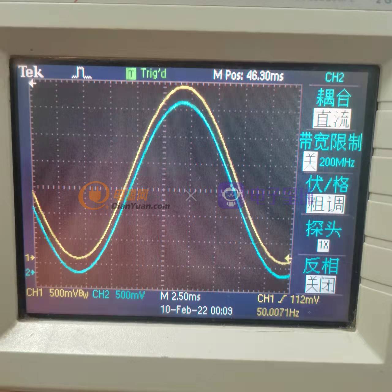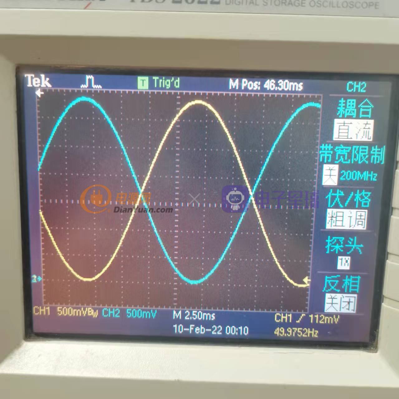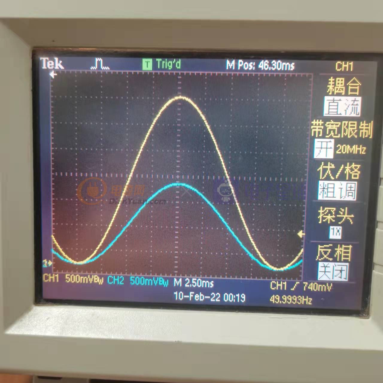 双通道50HZ、电压100%幅值、电流1%、0°相位: