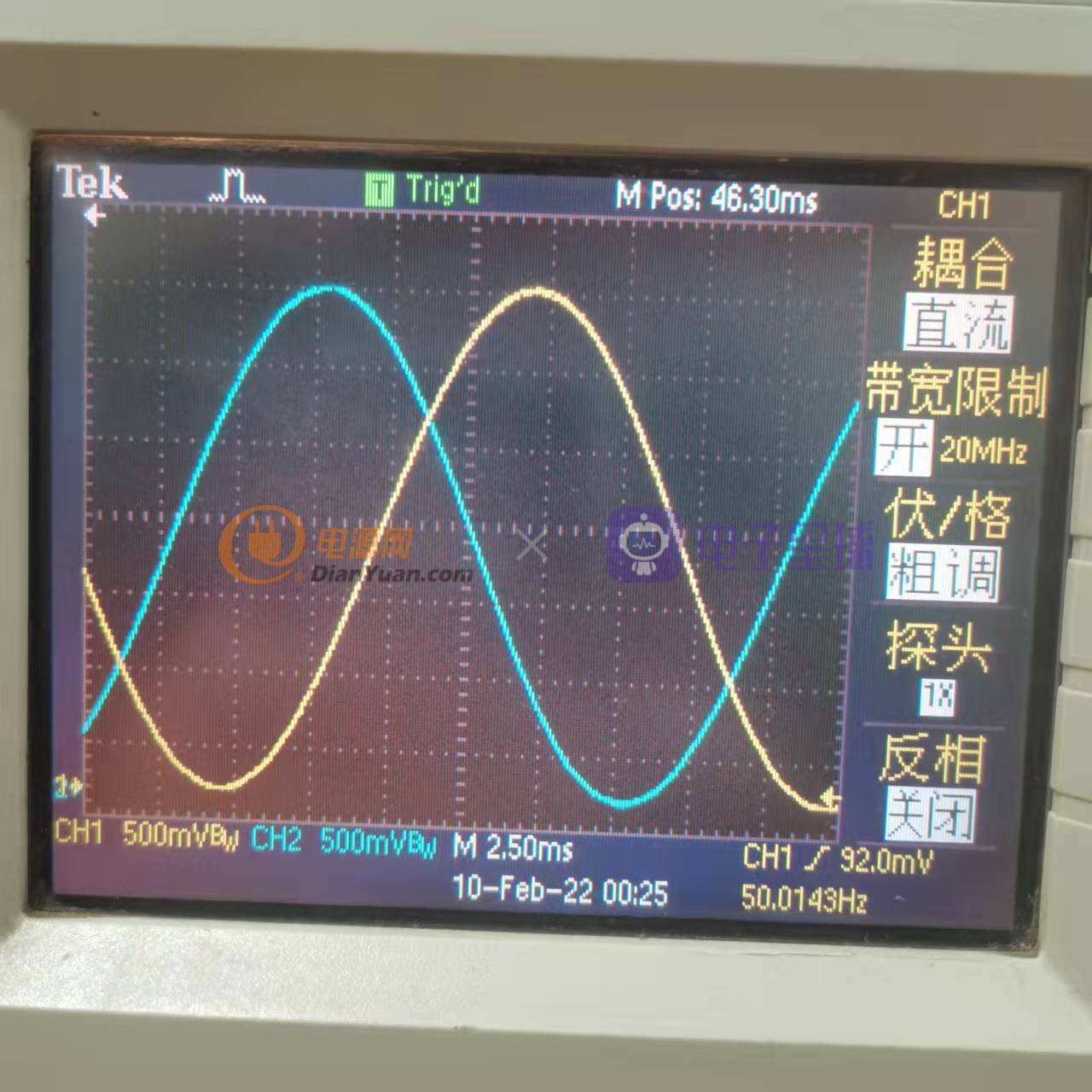 双通道50HZ、电压100%幅值、电流50%、0°相位: