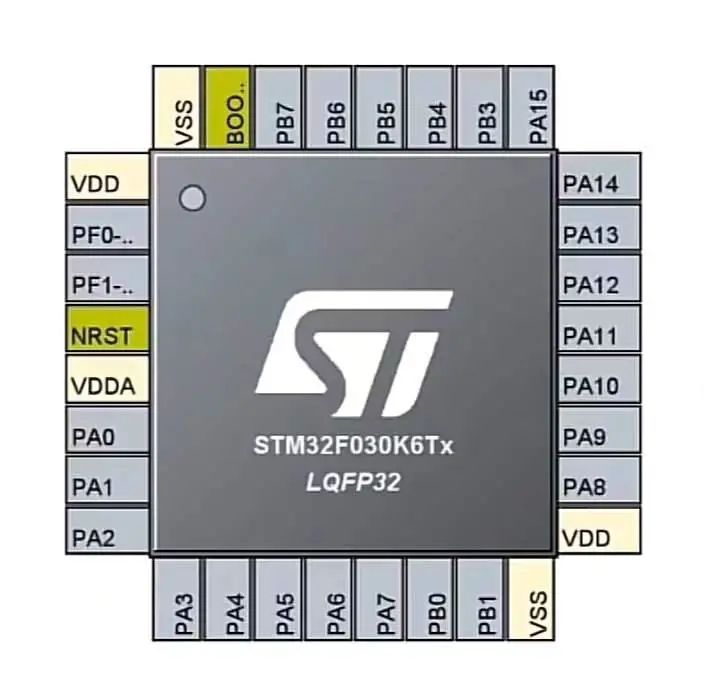 这个就是我们今天的主角,这款单片机芯片是STM32F030K6T6。