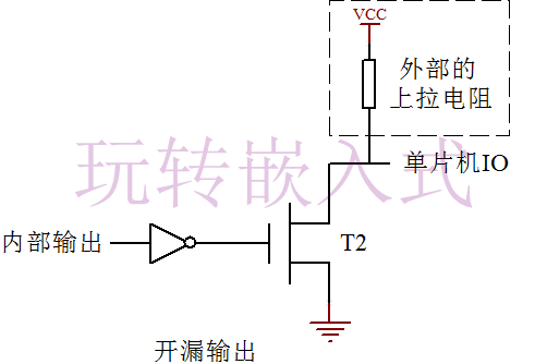 内部输出1时MOS管截止,输出与地断开,这时候IO口其实是没有驱动能力的,需要外部连接上拉电阻才能输出高电平,才能驱动数字器件;