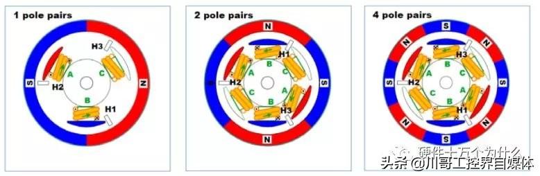 无刷电机中,换相的工作交由控制器中的控制电路(一般为霍尔传感器+控制器,更先进的技术是磁编码器)来完成。