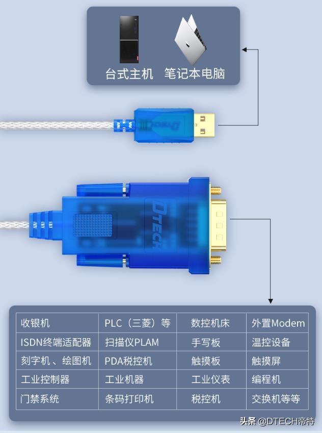 例如帝特的这个USB转RS232工业级串口线,它用的是英国FTDI-FT232+美国SP213双芯片组合设计的,信号传输稳定,能应对复杂电磁环境,能提高生产效率,广泛应用于工业科研等领域。