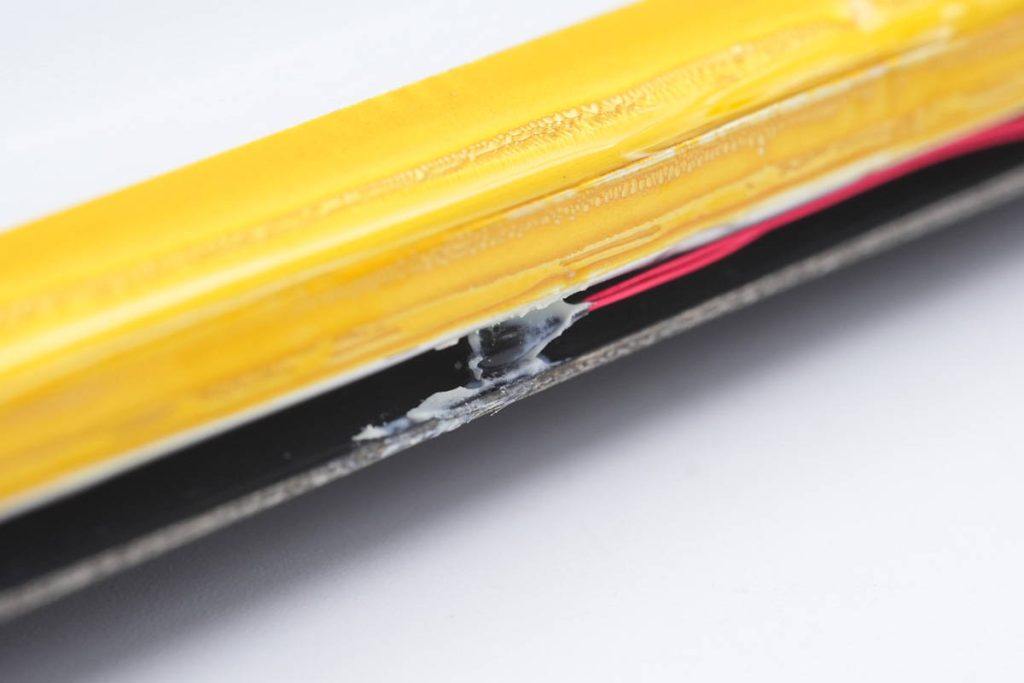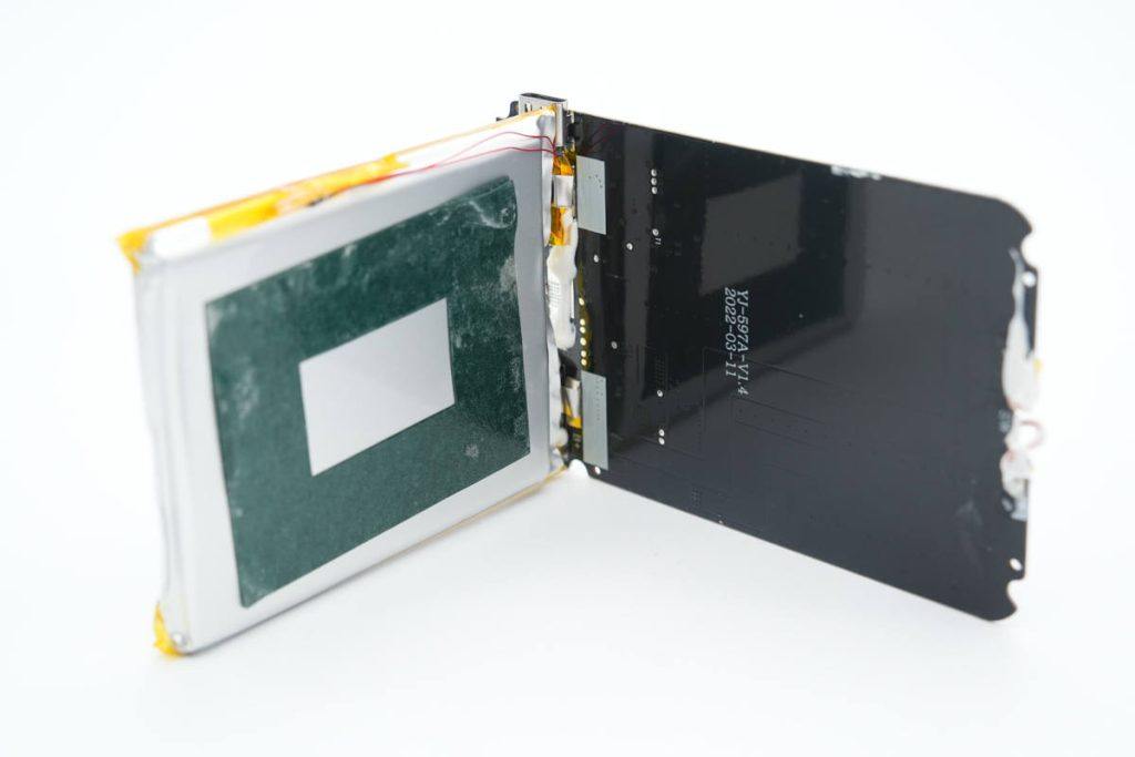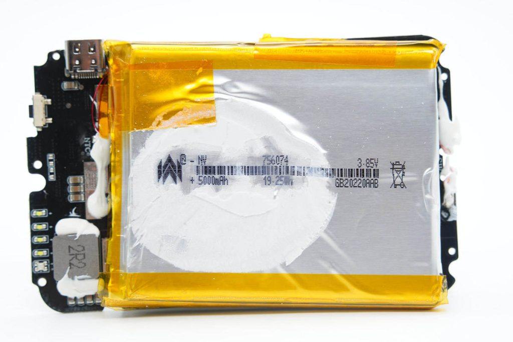 电池来自诺威新能源,容量为5000mAh,电压为3.85V,属于高压电池,相比3.7V锂电池具有更高的能量,电池尺寸为7.5mm厚,60mm宽,74mm长。