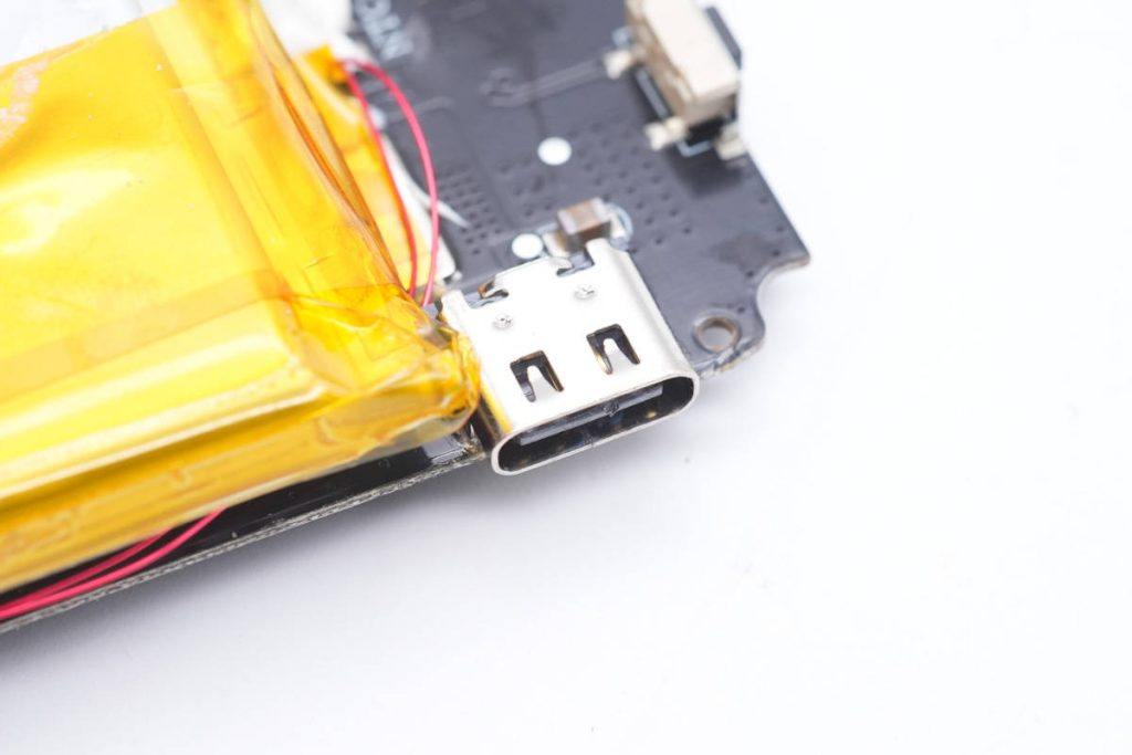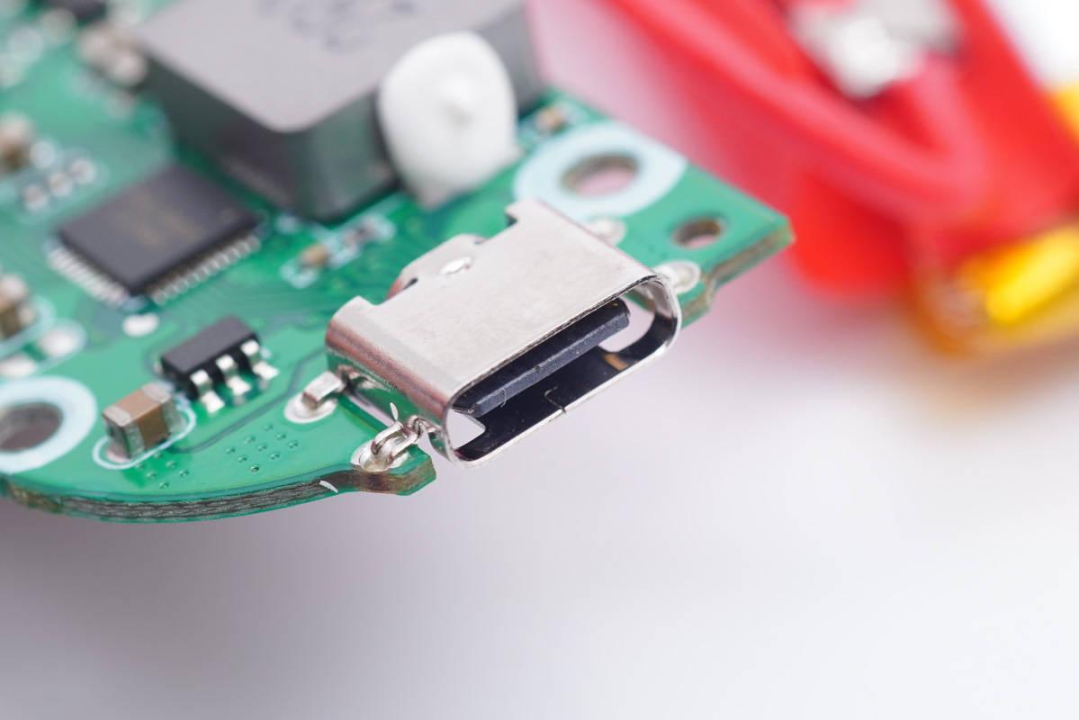 USB-C母座采用过孔焊接固定,黑色胶芯不露铜。