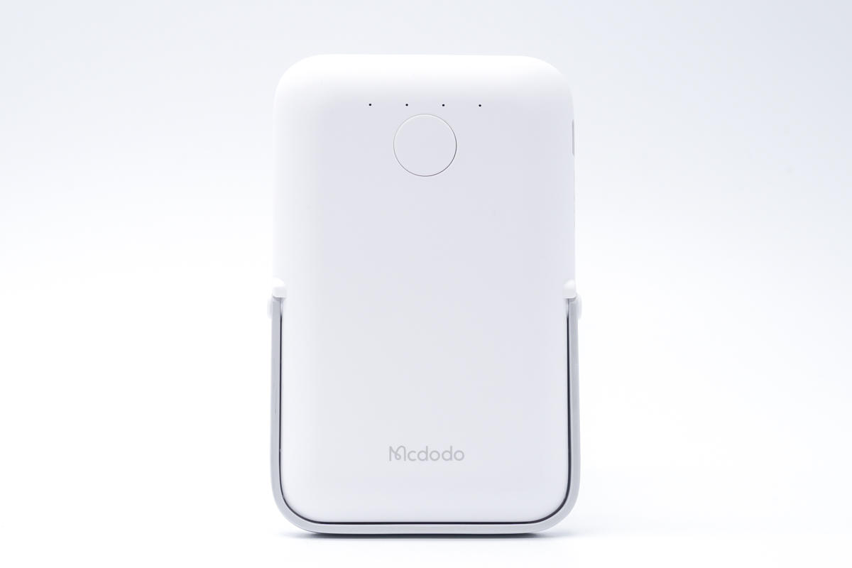 机身正面设有电源键和LED电量/快充指示灯,底部印有Mcdodo品牌logo。