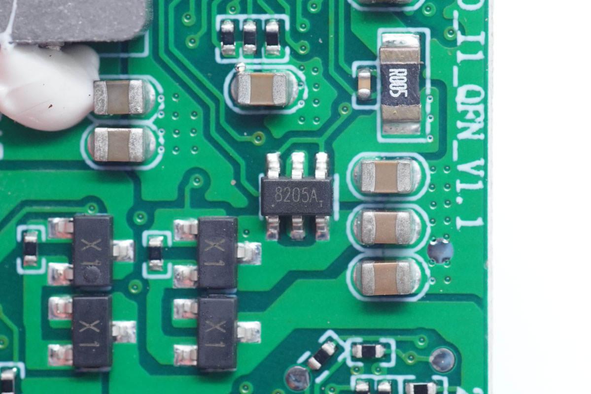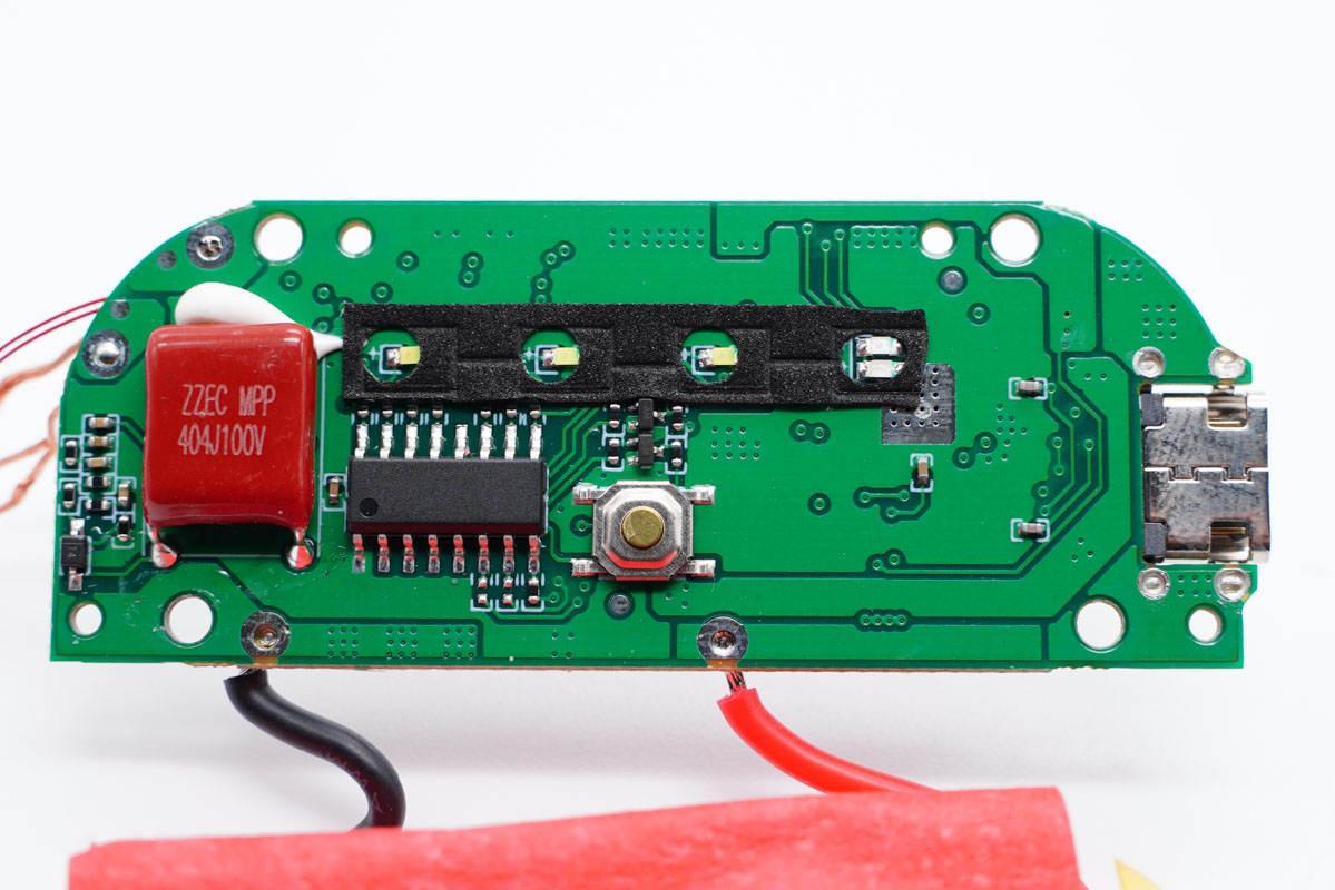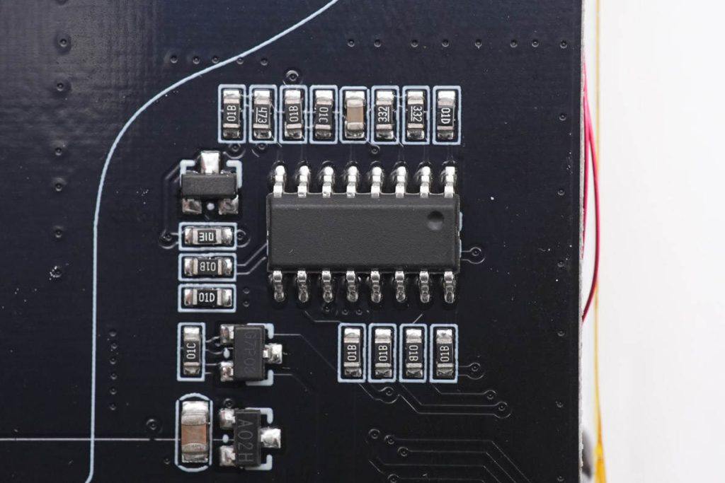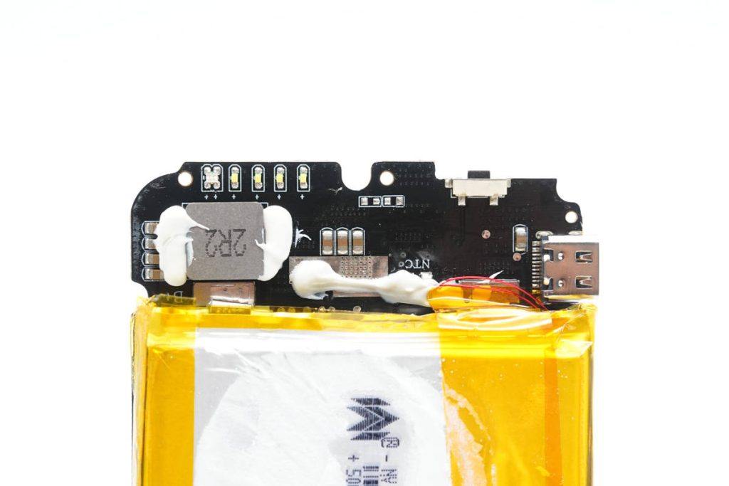 小板正面一览,设有移动电源主控芯片、电感、无线充芯片以及锂电保护芯片。
