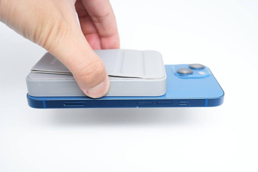 摩米士这款5000mAh磁吸无线充移动电源体积小巧,支持磁吸在苹果手机背面充电,支持15W无线快充和20W有线快充,对常见的手机都有非常优秀的兼容性,满足绝大多数需求。同时这款无线充移动电源在背面增添了手机支架,支持手机水平和垂直放置,大大方便使用。