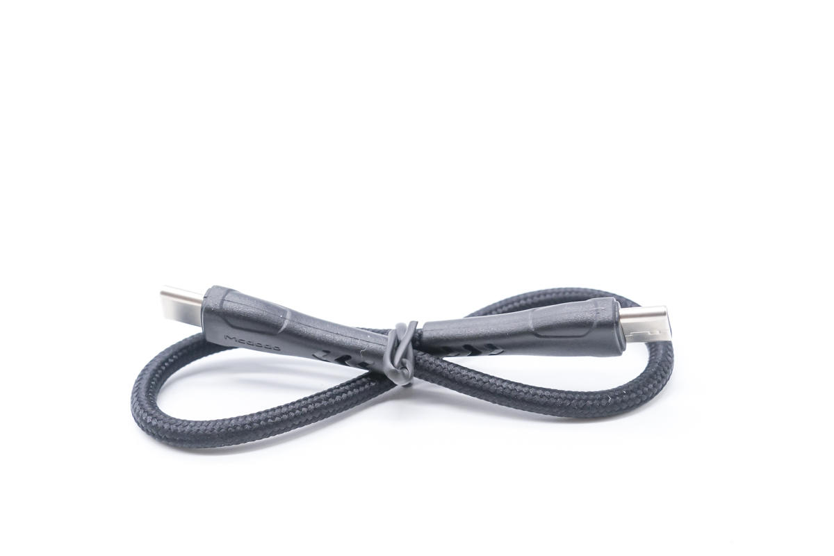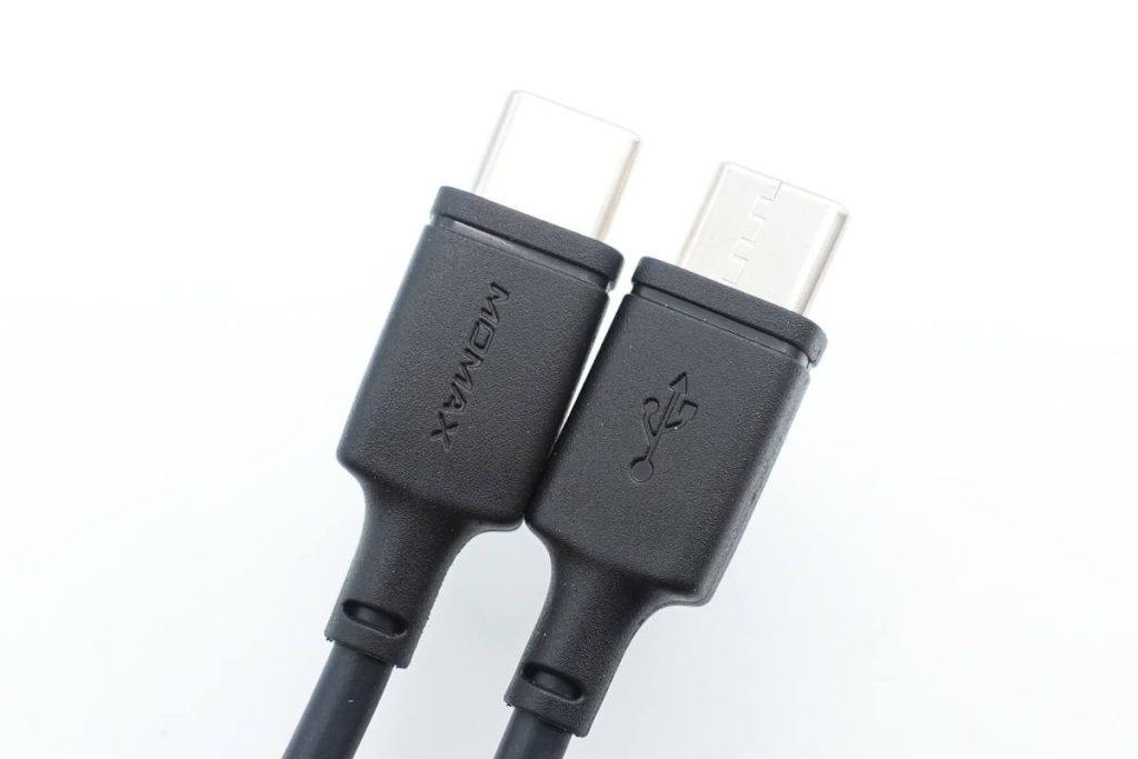附带线缆是CC线,线头外壳磨砂方便插拔,其中一面印有MOMAX品牌。