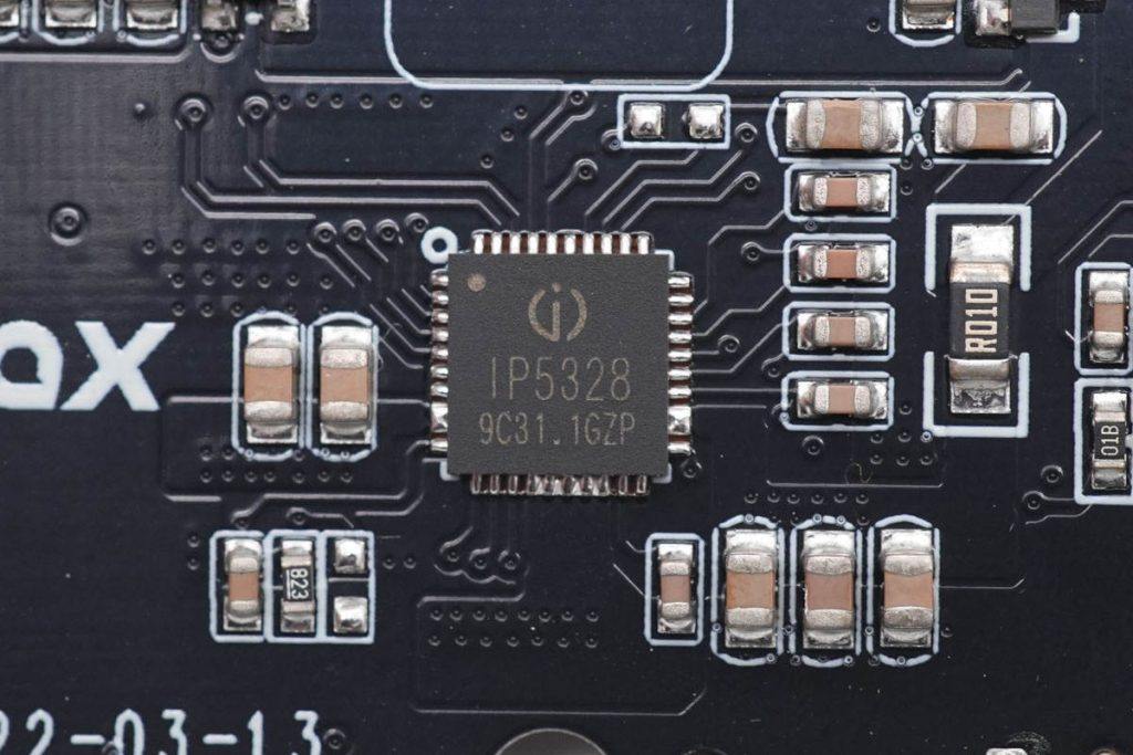 移动电源主控芯片采用英集芯IP5328P,集成了升降压和协议识别功能。得益于高集成度,芯片外围器件少,所以IP5328很适合应用于小尺寸PCB设计。同时英集芯IP5328P还集成QC2.0/QC2.0/ QC 3.0 输出快充协议,并且通过了QC3.0高通认证,证书编号:4788056908-2。集成FCP、AFC、SFCP、MTK PE、USB C DRP 、BC1.2输入 /输出充电协议。