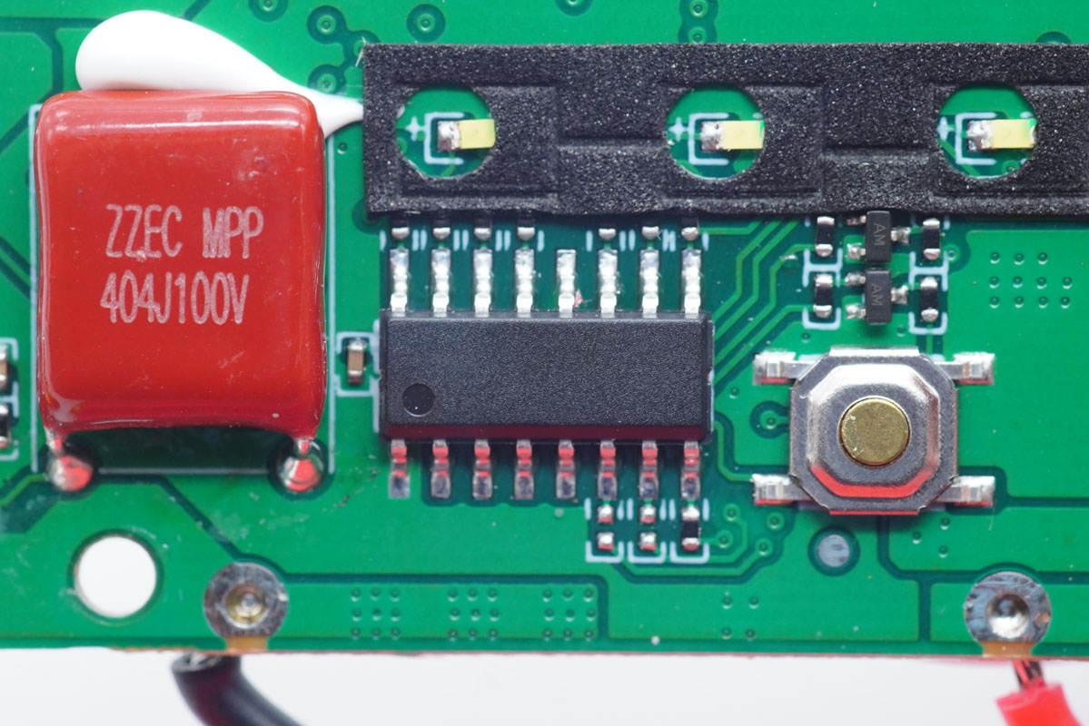 2R2电感特写,打胶加固,配合主控芯片进行升降压实现充放电。