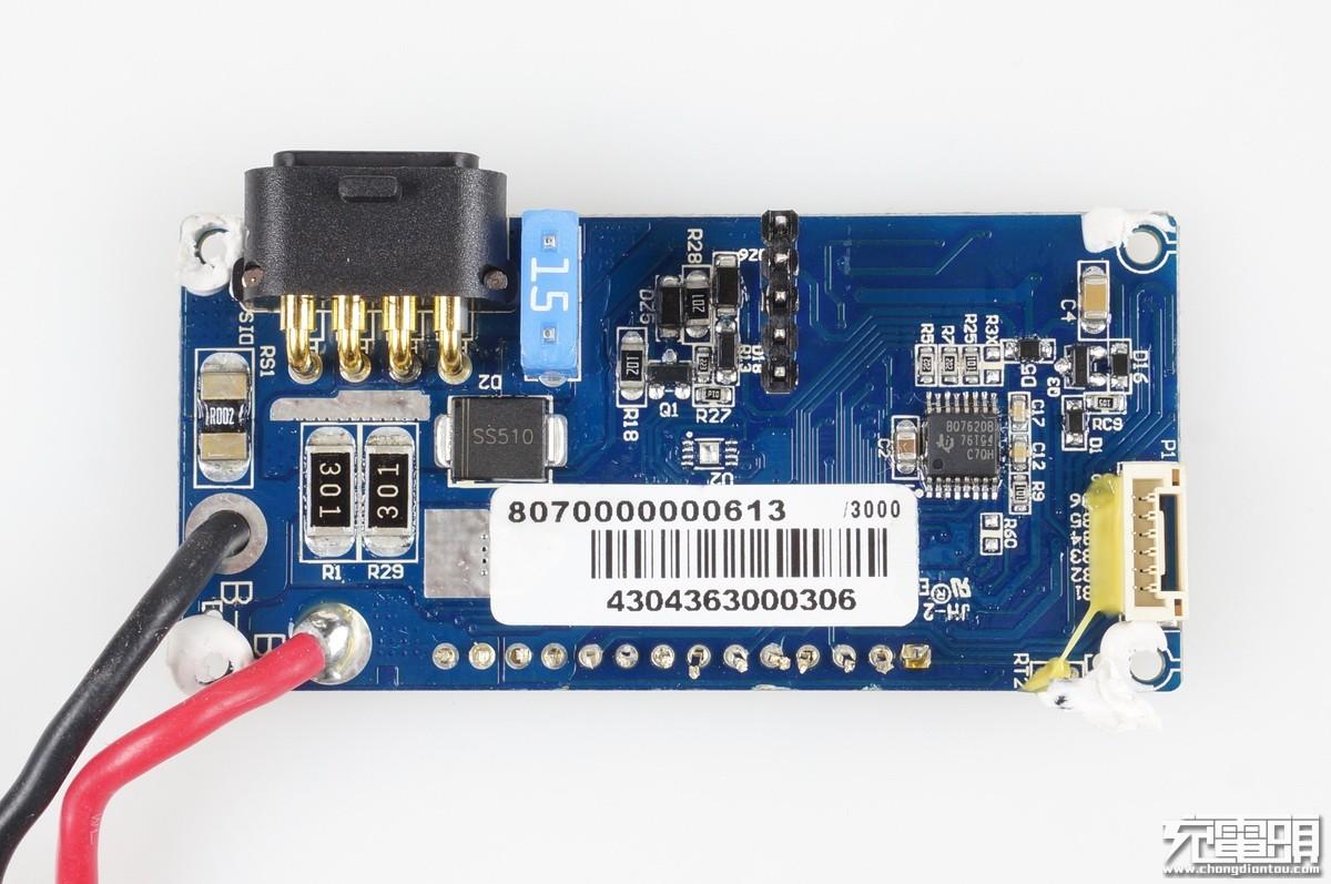 从这个位置可以看到每一颗电芯都有独立的检测线连接到PCB上,可以准确监测任意一节电芯当前电压,充放控制更加安全。