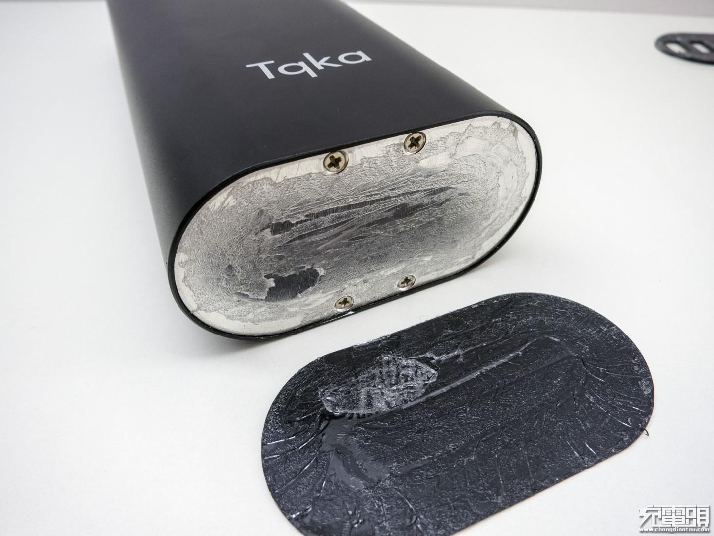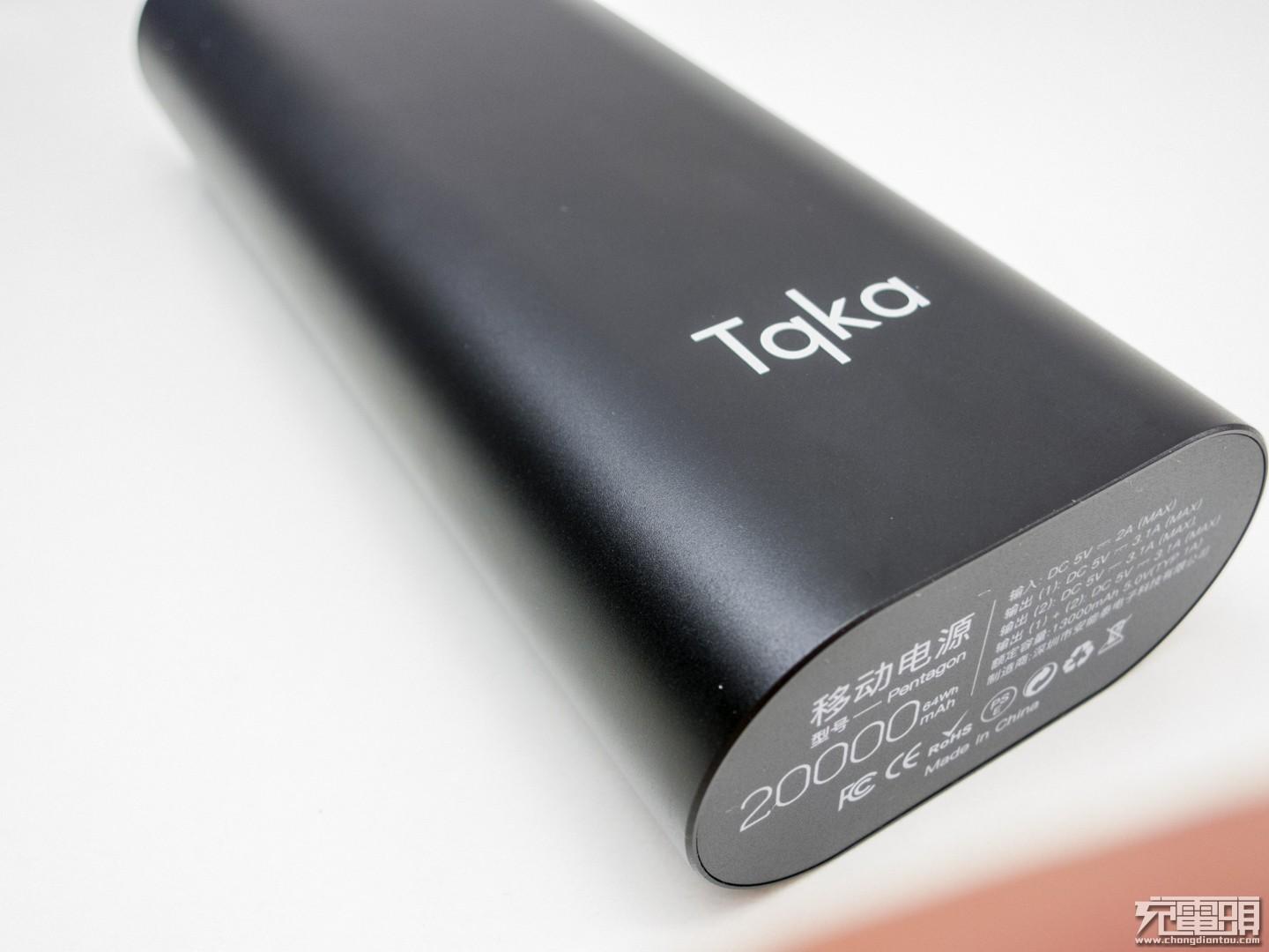 黑色的移动电源印有TqKa LOGO,目测好长,超过目前所有移动电源。