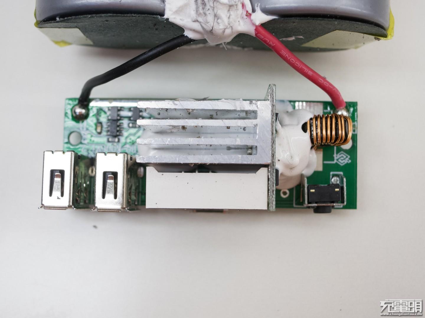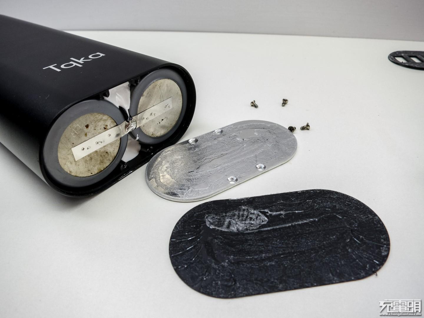 松开后面的螺丝,底板是铝质很厚但没有青稞纸做绝缘,上下用704胶固定正常这类移动电源就是这种组装方式。