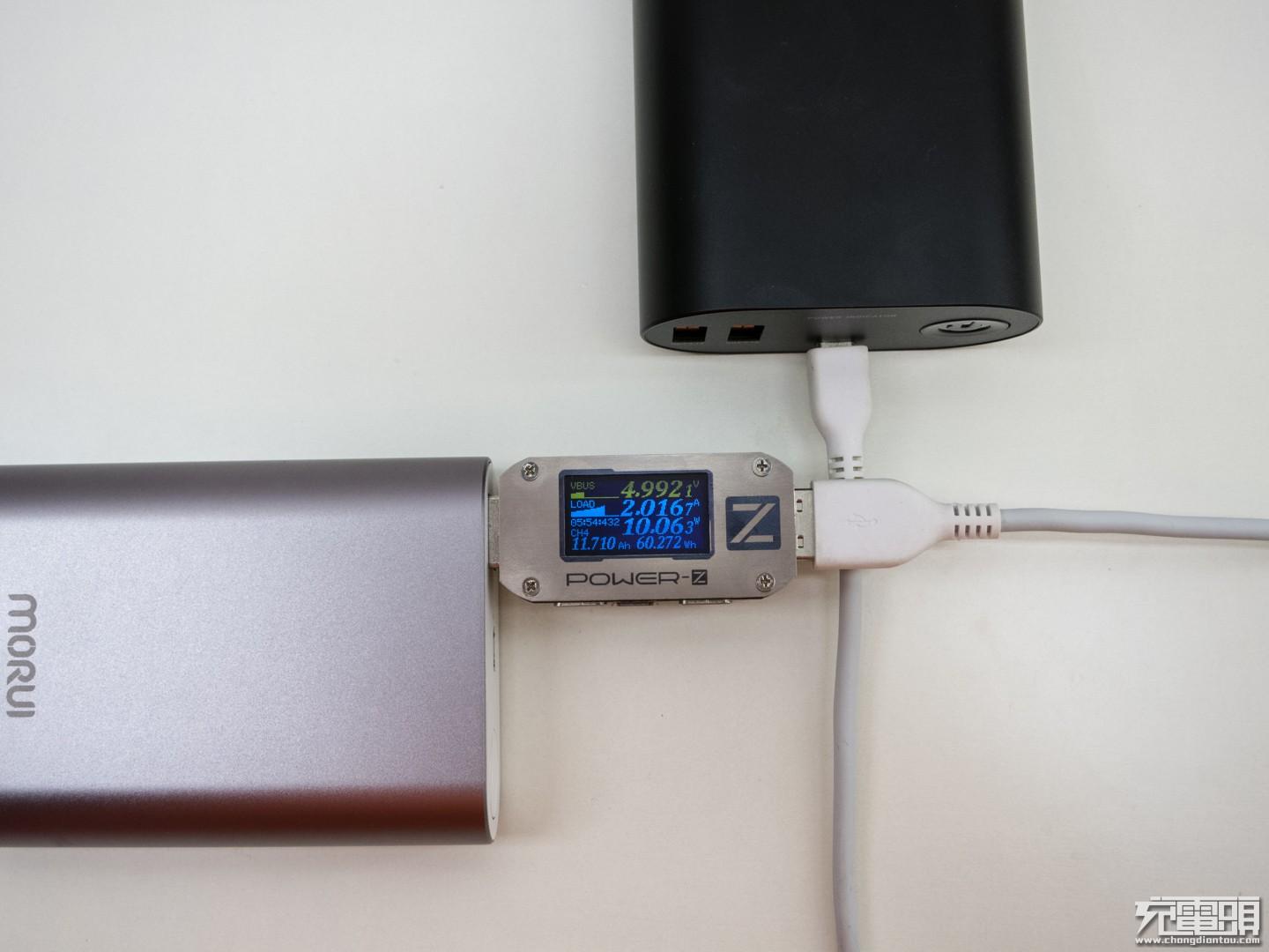 自用的移动电源充电测试,2.01A@10W输入。