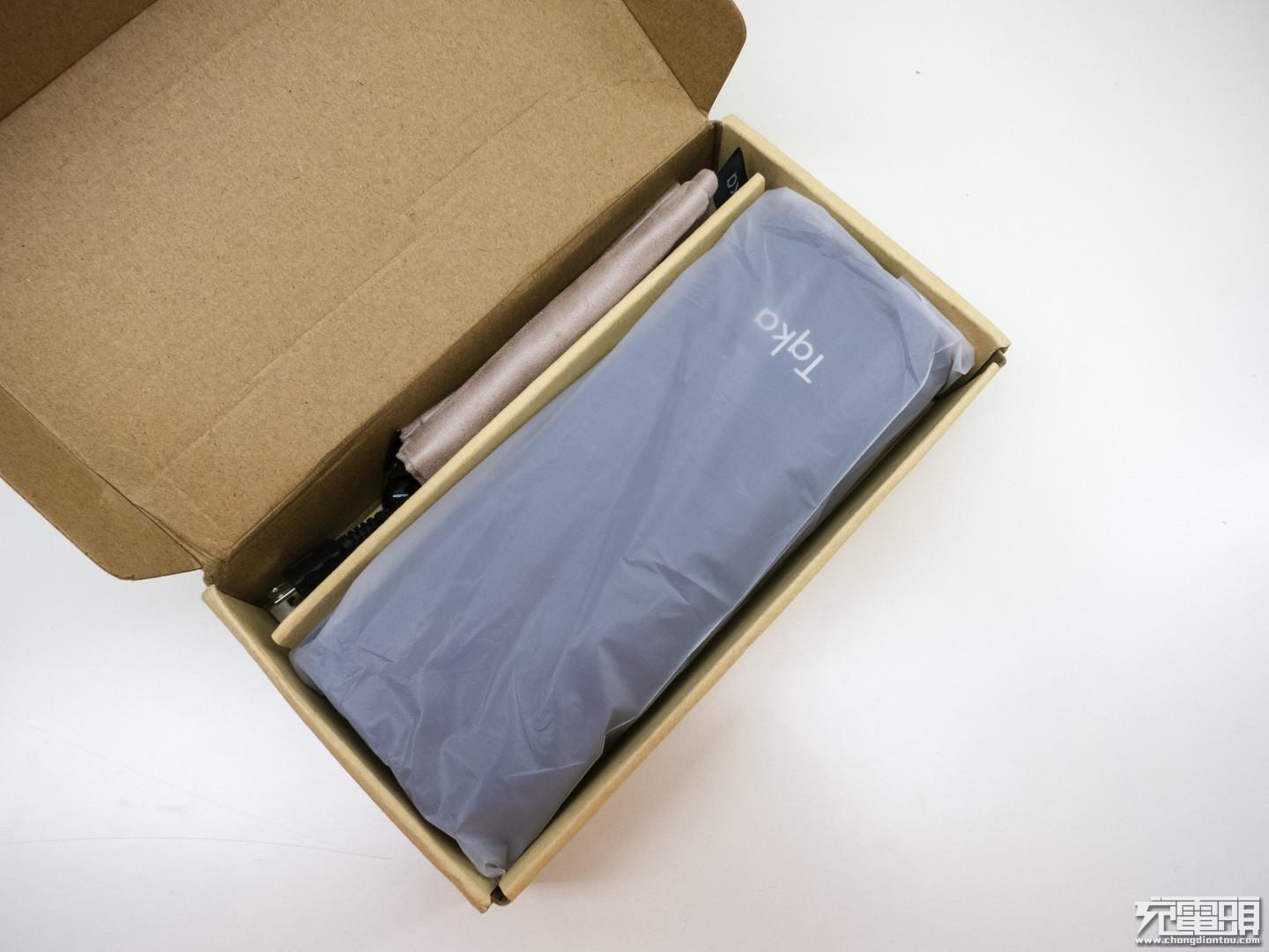打开包装,黑色的移动电源本体用塑料袋包装。