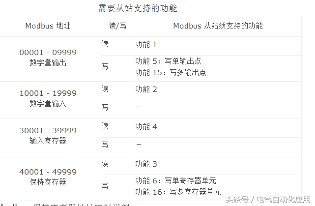 三、需要从站支持的功能及Modbus 保持寄存器地址映射