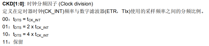 采样频率fDTS与内部时钟fCK_INT的关系,可依据下图来确定。STM32CUBE中设定此参数 的位置为时基中的CDK设定。DTS与内部时钟fCK_INT的关系