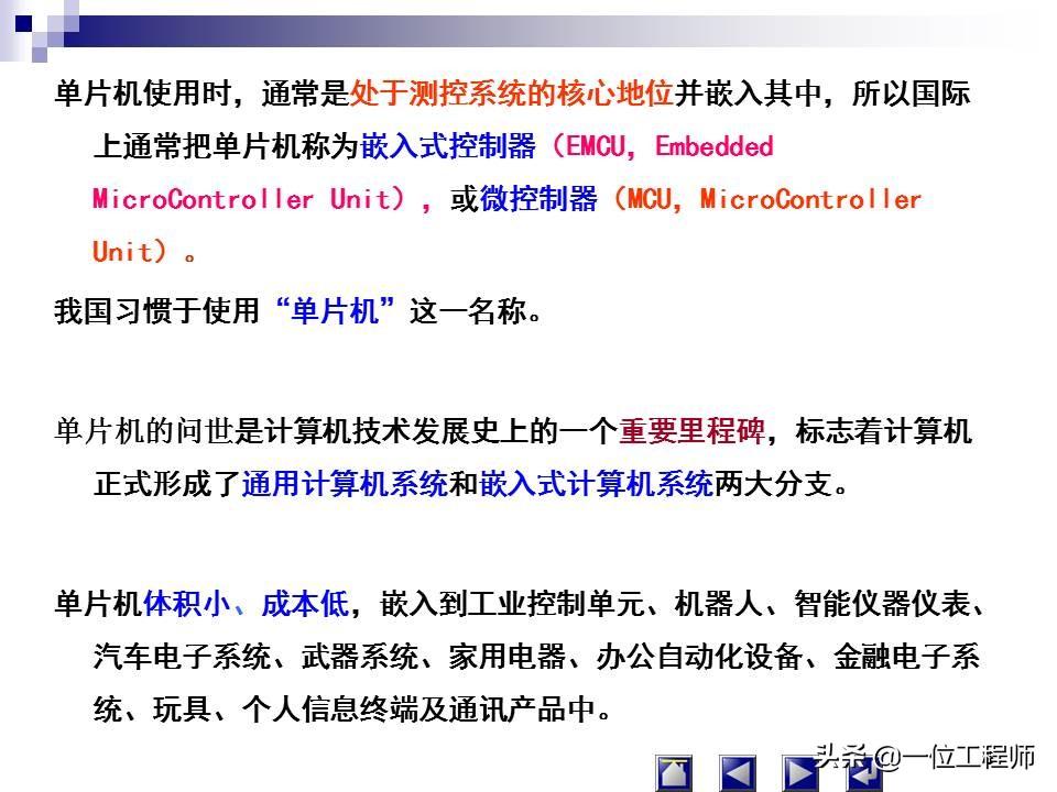 单片机使用时,通常是处于测控系统的核心地位并嵌入其中,所以国际上通常把单片机称为嵌入式控制器。
