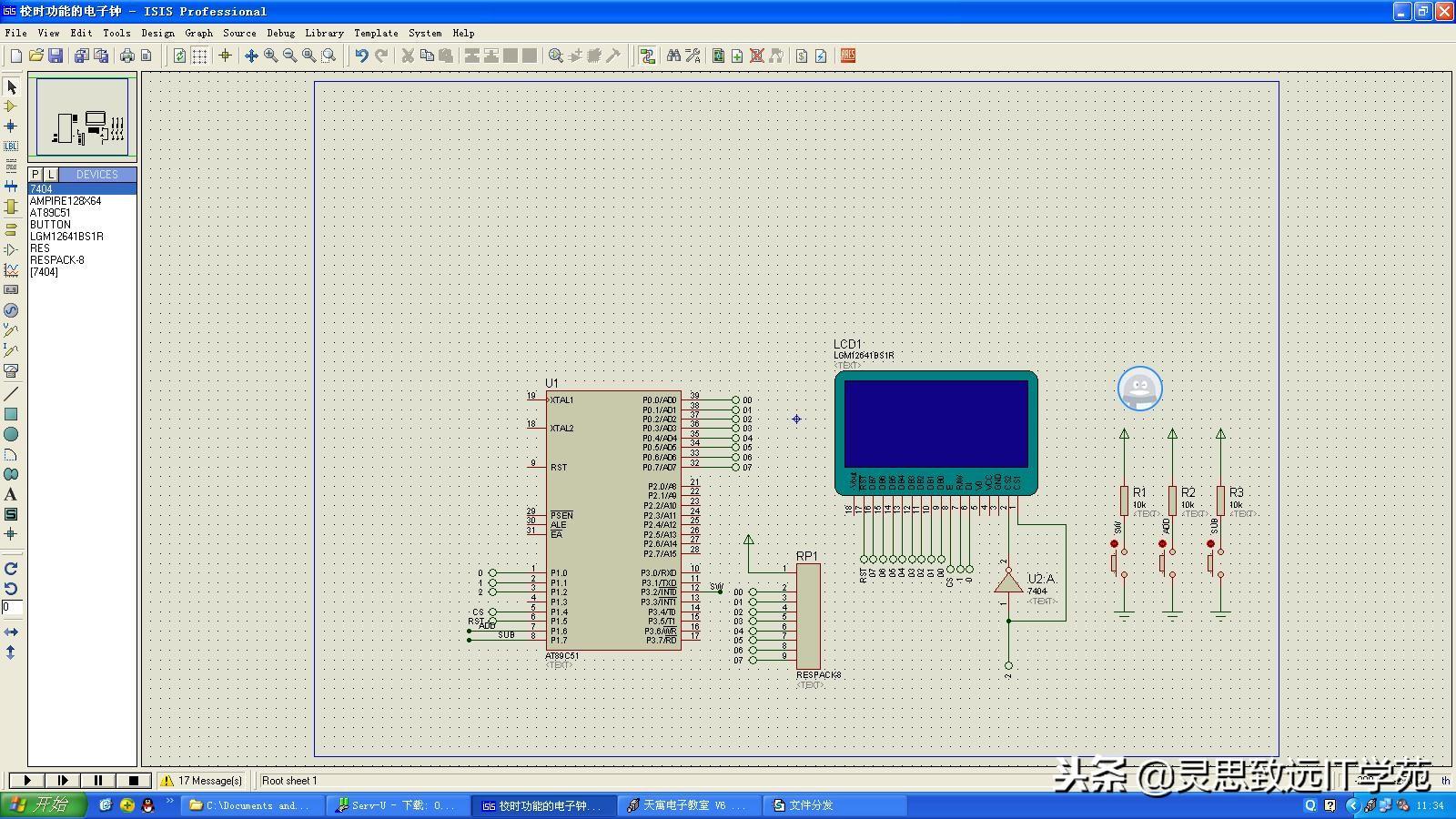 单片机入门-C51语言用按键中断和查询两种方法调整电子钟参数解说视频: