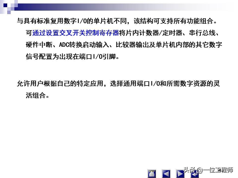 (1)通用型单片机就是其内部可开发的资源(如存储器、I/O等各种外围功能部件等)可以全部提供给用户。