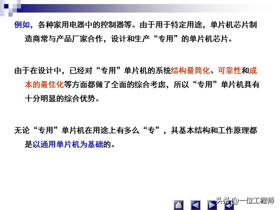 (2)专用型单片机是专门针对某些产品的特定用途而制作的单片机。