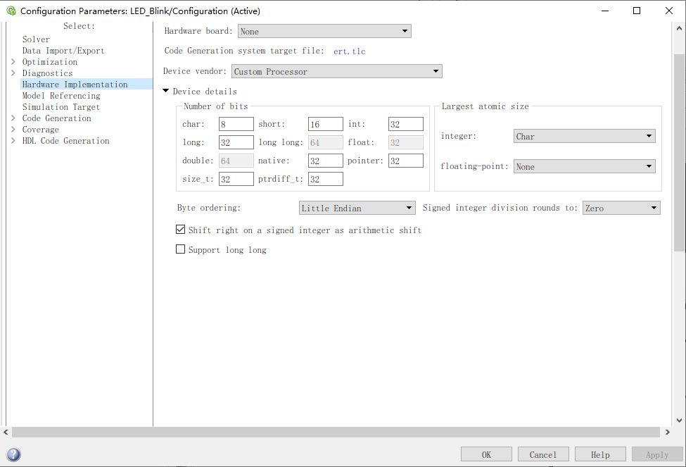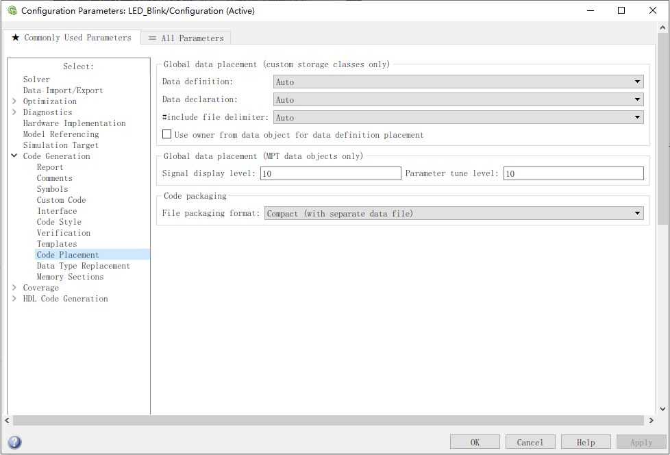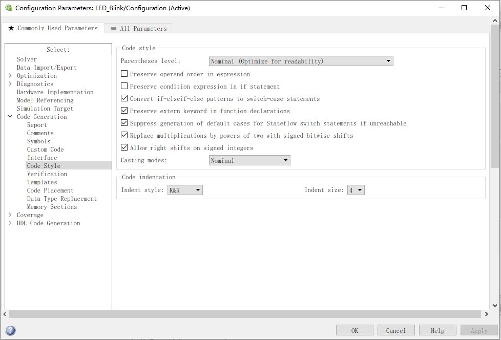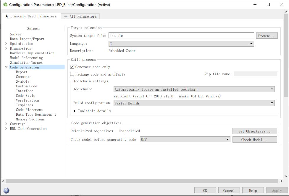 如图7所示,点击“Code Generation”栏,设置代码生成参数,完成后点击“Apply”。