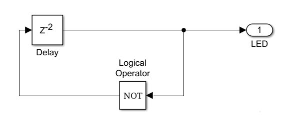 void LED_Blink_step(void){ boolean_T rtb_Delay; /* Delay: '<Root>/Delay' */ rtb_Delay = LED_Blink_DW.Delay_DSTATE[0]; /* Outport: '<Root>/LED' incorporates: * Delay: '<Root>/Delay' */ LED_Blink_Y.LED = LED_Blink_DW.Delay_DSTATE[0]; /* Update for Delay: '<Root>/Delay' incorporates: * Logic: '<Root>/Logical Operator' */ LED_Blink_DW.Delay_DSTATE[0] = LED_Blink_DW.Delay_DSTATE[1]; LED_Blink_DW.Delay_DSTATE[1] = !rtb_Delay;}