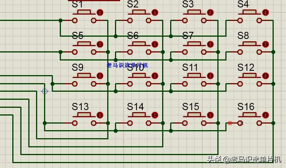 最常见的矩阵键盘是4*4键盘,其实现方法是将16个按键按照4x4矩阵方式连接,如下图所示。从连接方式来看,有4根行线和4根列线。每个行线和列线的交汇处就是一个按键位。这样总共有8根线就可以实现16个按键的检测,比一个按键连接一个I/O口节省了一半的I/O端口。