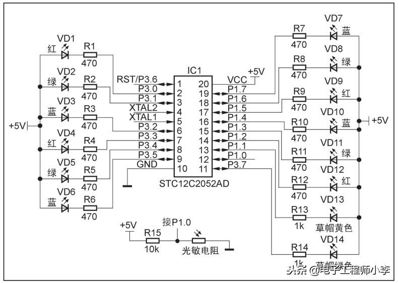 ◆ 20脚的STC12C2052AD单片机1个(或者选用同类有AD功能的单片机)