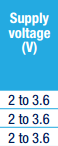 Supply voltage:正常工作所需电压。下图表示供电电压范围为2到3.6V