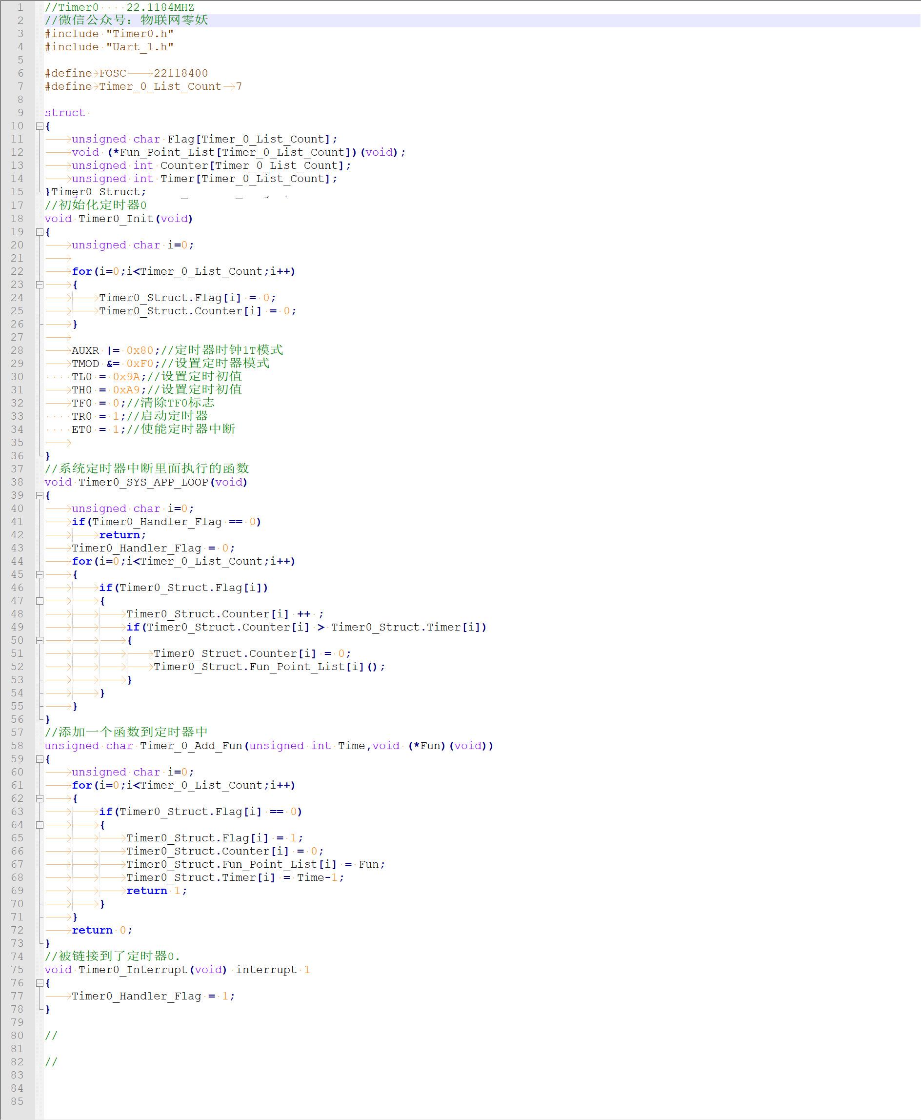 2,单片机开了一个定时器,每1ms进入一次中断。