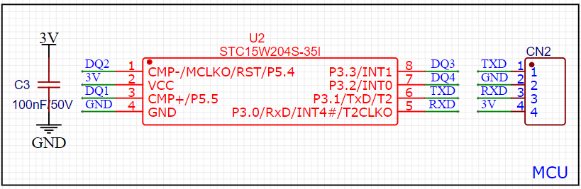 3,左边是一个4PIN的接口,用来下载程序,传输JSON字符串。老姚的STC单片机是通过串口下程序的,简直不要太爽。