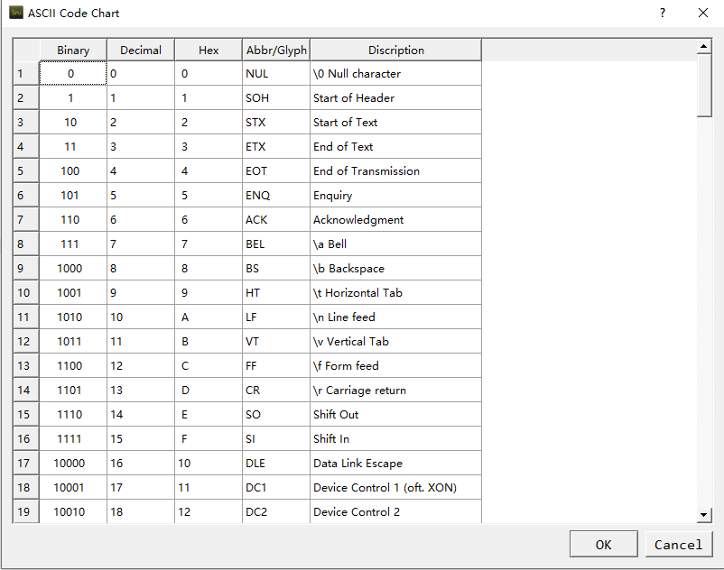 还有ASCII码表