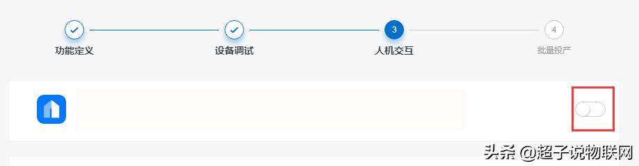 和使用STM32单片机做DIY设计时一样,我们使用阿里云生活物联网平台的公版APP,也就是云智能APP。我们打开上图中红圈所示的开关。