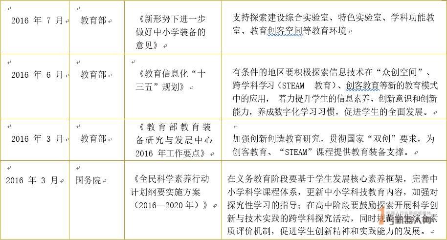 图表1: STEAM 教育国家层面相关利好政策列举