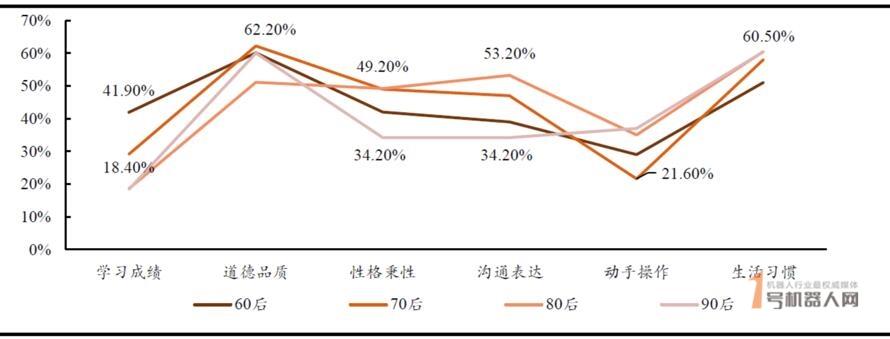 图表3:80、90 后家长对学习成绩关注度下降,对其他素质关注度上升