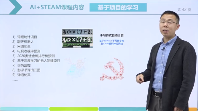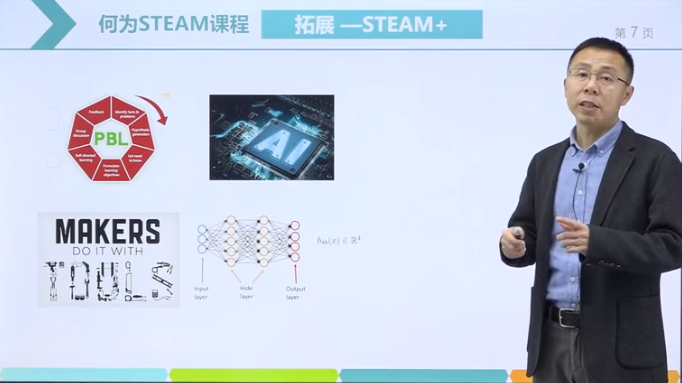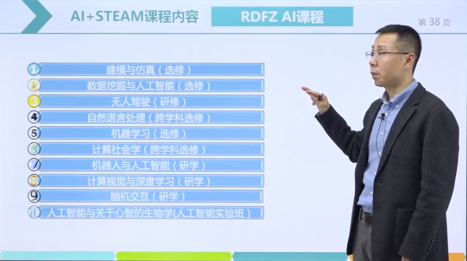袁博士还详细介绍了人大附中的AI+STEAM课程的内容。
