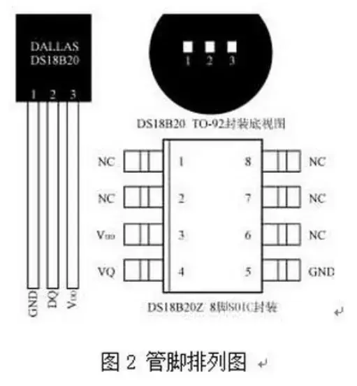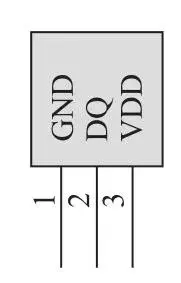 外观与前面介绍的8550三极管相似,也是三个引脚。引脚排列如下图。GND为电源地,DQ为数据输入/输出,VDD(VCC)为电源输入端。