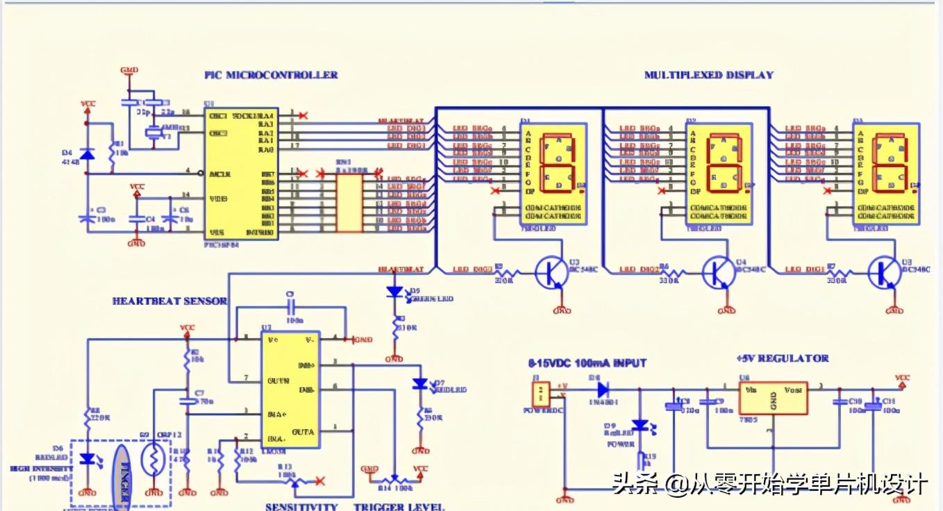 单片机的作用是用来测量脉搏的间隔,以计算出每分钟的心跳次数,这个制作用1602液晶屏作为显示器,你也可以改改程序,用三位数码管来显示。